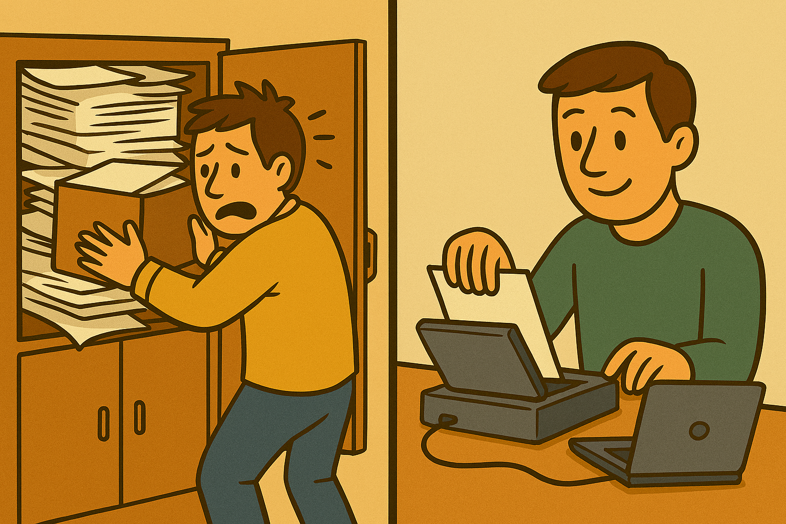 Some people just can’t bring themselves to get rid of anything others are ruthless at clearing out unused bits and pieces. At times the choice is made for us. If you are a self-employed trader, how long must you keep your business records supporting your tax return? The answer: 5 years after the 31st January filing deadline for the year in question. For example records relating to the year ended 5th April 2017 must be kept until 31st January 2023. For some this could represent a lot of papers, taking up lots of space and causing clutter, something we would rather do without. So what could the penalty be if we decided to just clear them out early? HM Revenue & Customs have the power to charge a penalty of £3000 for failure to keep business records. On second thoughts maybe they aren’t taking up to much space after all? We don’t have to give up on the idea of regaining some of that space and clearing out that clutter so easily.